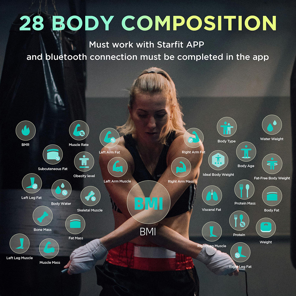 - 3-in-1 Display: Weight, Body Fat and Muscle Rate